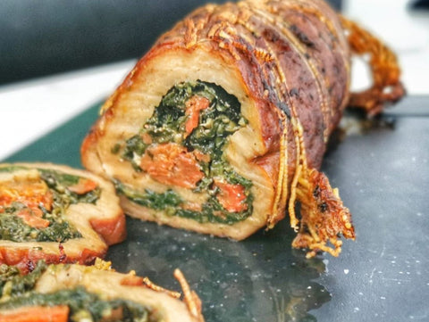 Ho fatto un’arrosto ripieno di spinaci formaggio veg e pomodorini semisecchi super buono😋